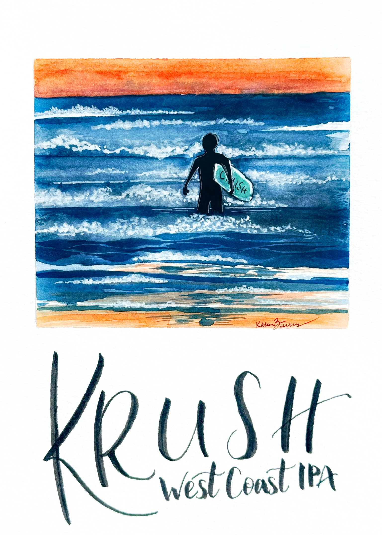 Krush a wave with this West Coast IPA made with Krush hops. Nice fruitiness with the perfect bitterness.